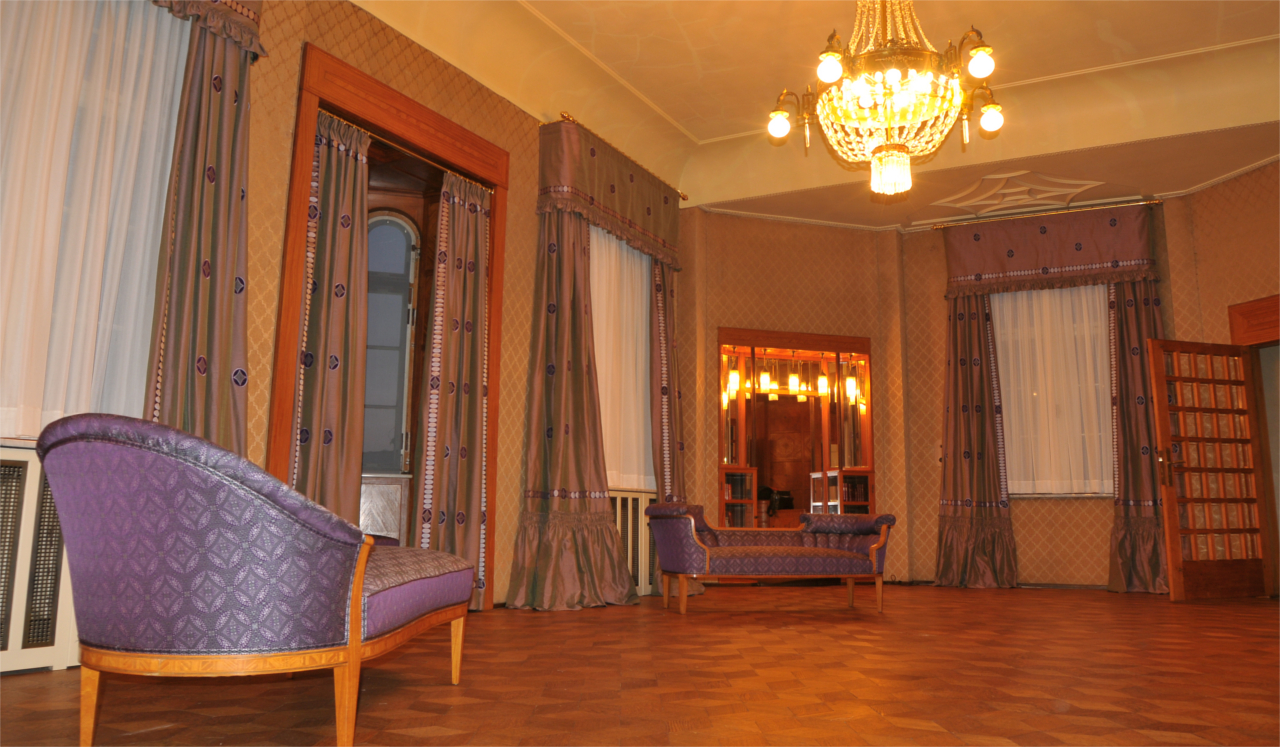 Wir übernahmen die aufwendige Konfektionierung und Montage der Fensterdekorationen nach historischem Vorbild.