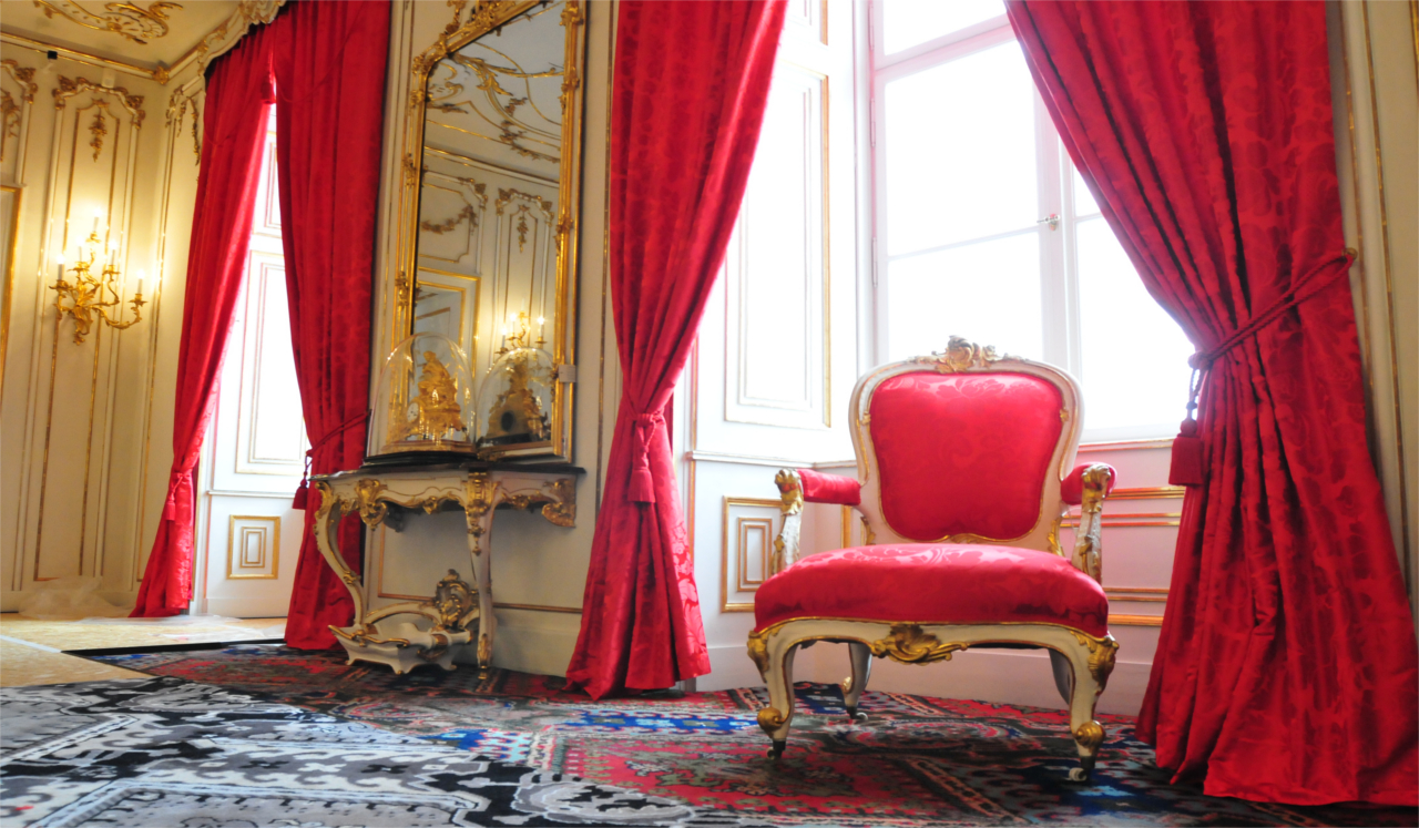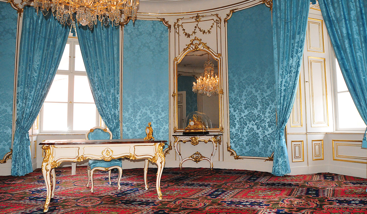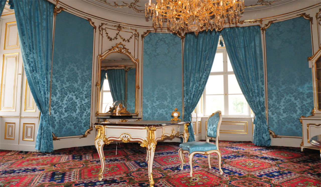 Seidenbrokate und Seidendamaste kamen hierbei zum Einsatz. Diese wurden nach historischem Vorbild hergestellt.