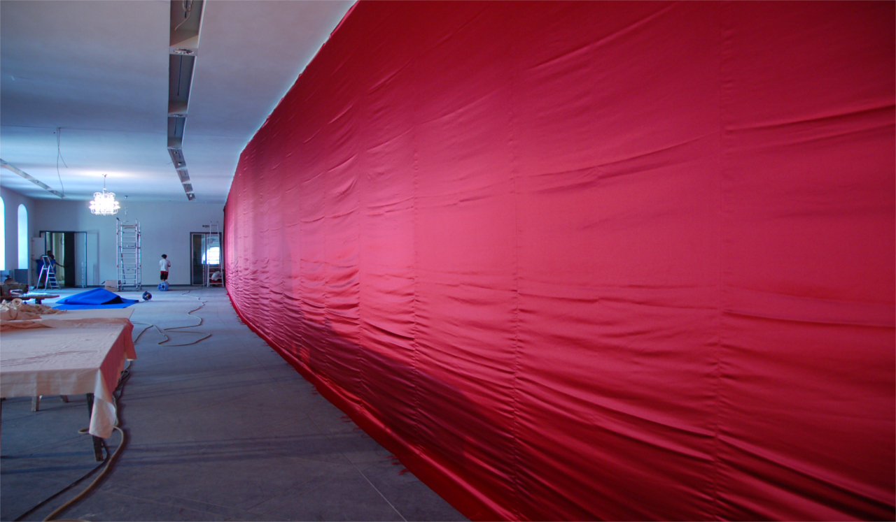 Zum Einsatz kam reine Seide, die vor Ort konfektioniert wurde und somit auf kurzem Wege direkt an die Wand montiert werden konnte.