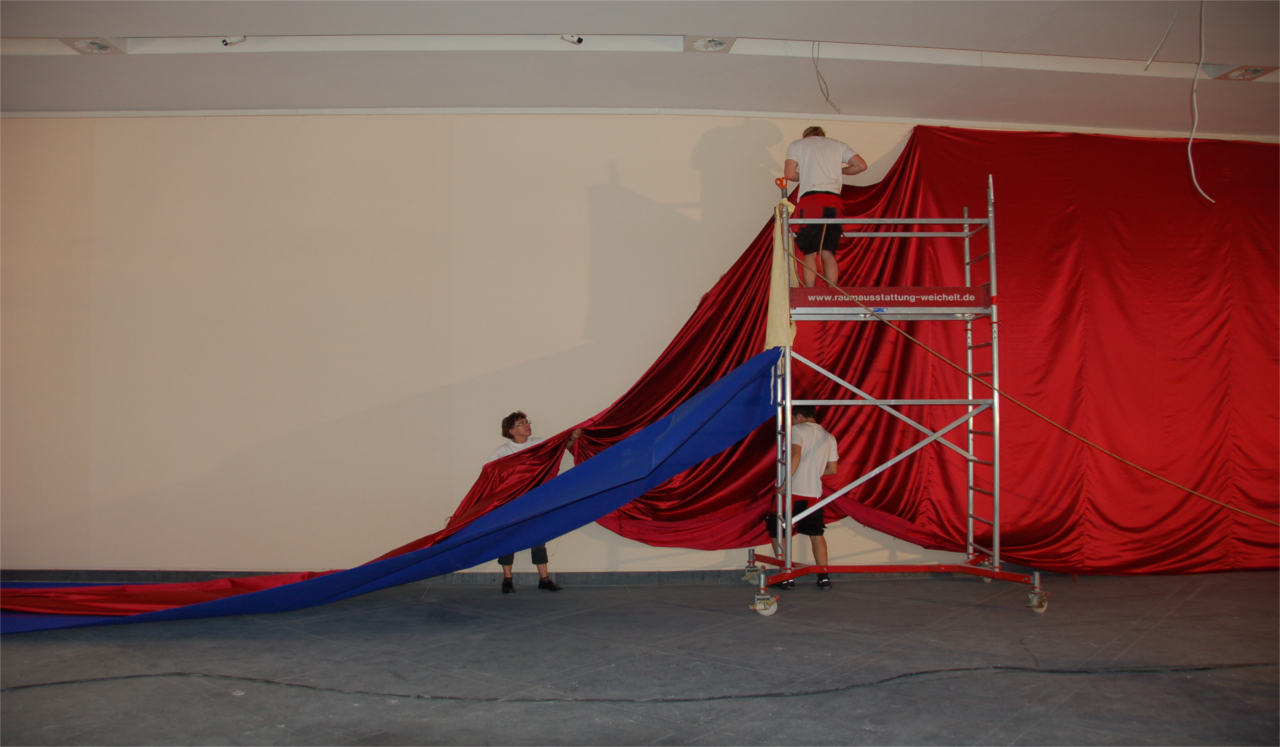 Zweiundvierzig Meter breit und vier Meter hoch lautete die Maßgabe bei unserer bisher längsten zu bespannenden Wand.