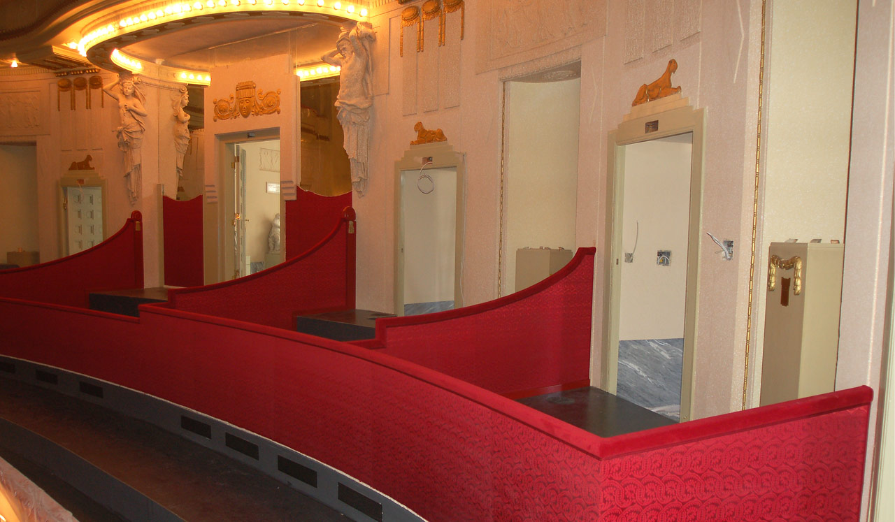 Im Cottbusser Theater wurden von uns die gesamten Wandbespannungen konfektioniert und montiert.